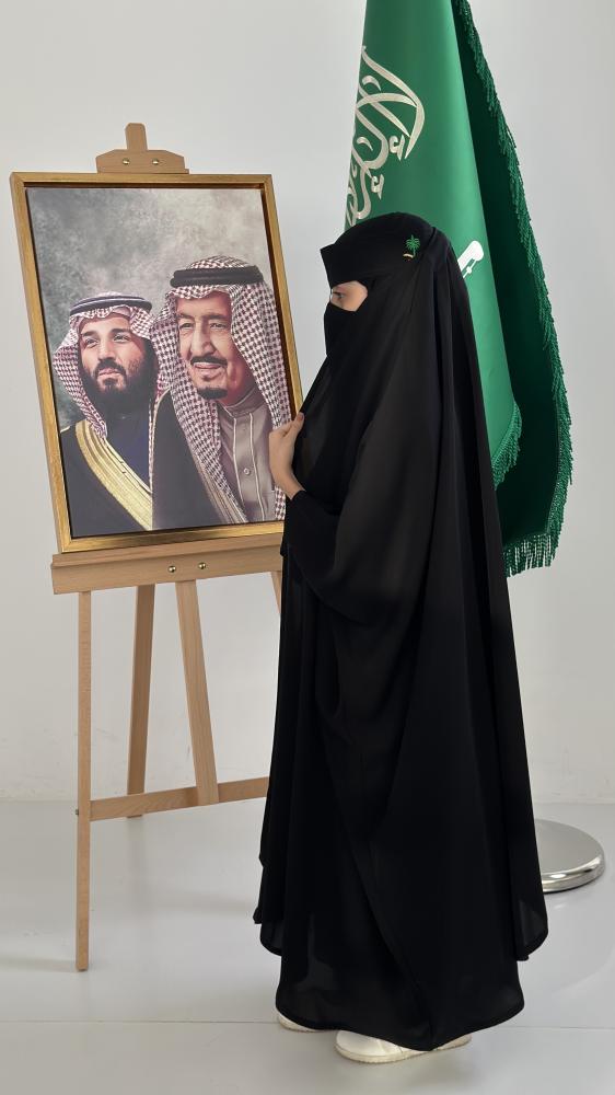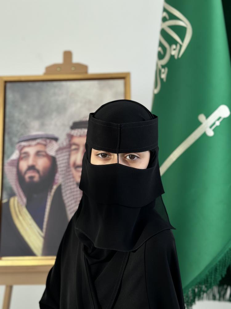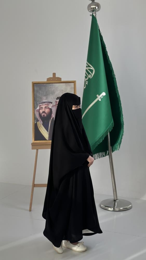 عباية يوم التأسيس بناتي + برقع مطرز بسيفين ونخلة فاخر